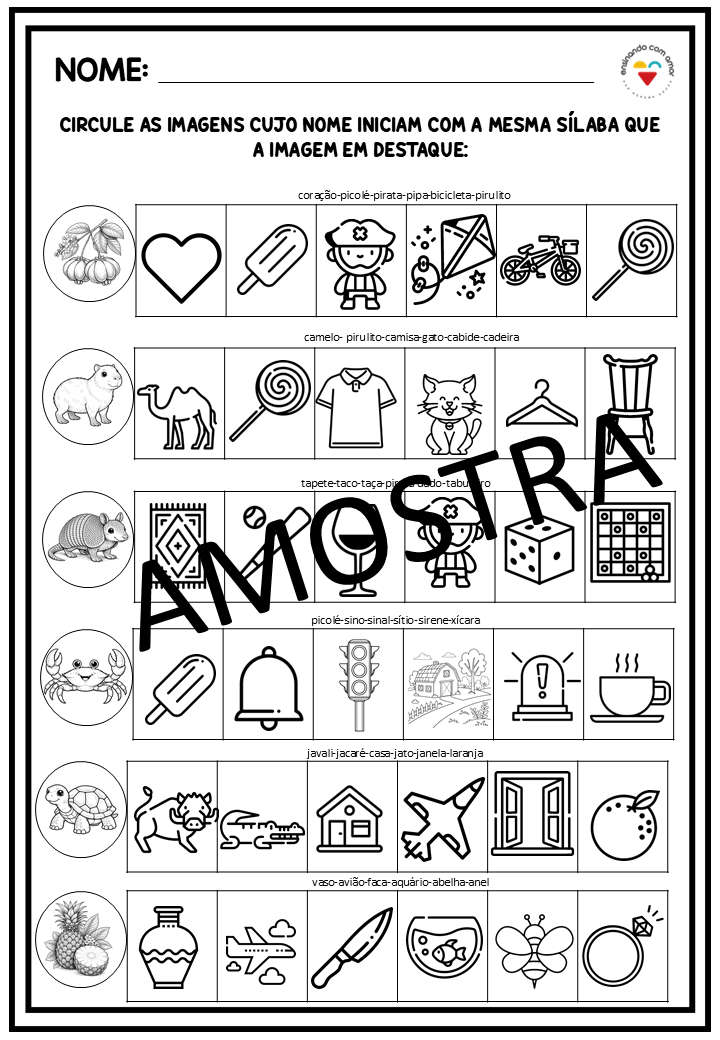 ✔ Propostas com sílabas, rimas, letras iniciais e formação de palavras;