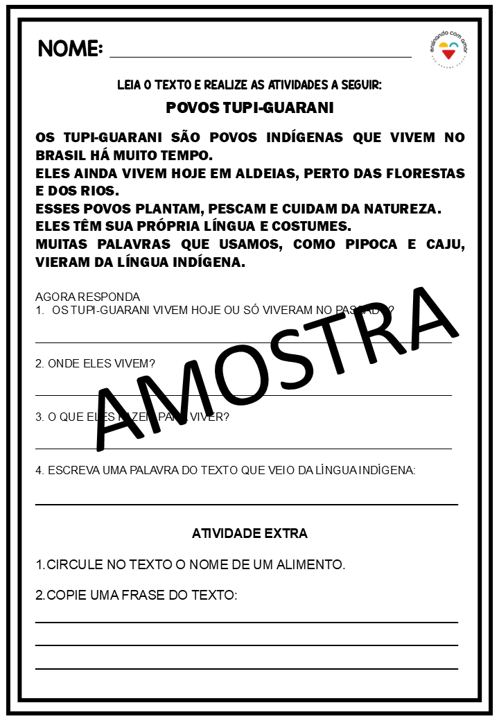 SEQUÊNCIA DE ATIVIDADES O TUPI QUE VOCÊ FALA