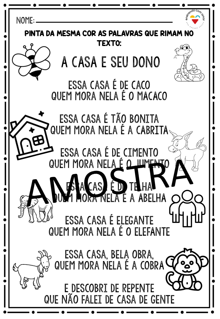 ✅ Atividades de rima e leitura